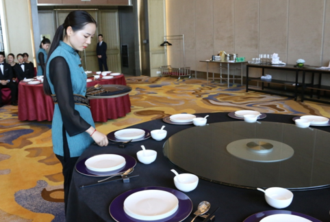 此次技能大賽共分中餐宴會和西餐宴會擺臺2類競賽項(xiàng)目,比賽共有30名酒店餐廳一線服務(wù)職工參加,經(jīng)過賽前刻苦練習(xí),初賽過關(guān)斬將,最終有6名選手闖入決賽,競賽現(xiàn)場參賽選手通過儀容儀表展示、現(xiàn)場操作等方式充分展現(xiàn)了扎實(shí)的服務(wù)技能和良好的心理素質(zhì)。
