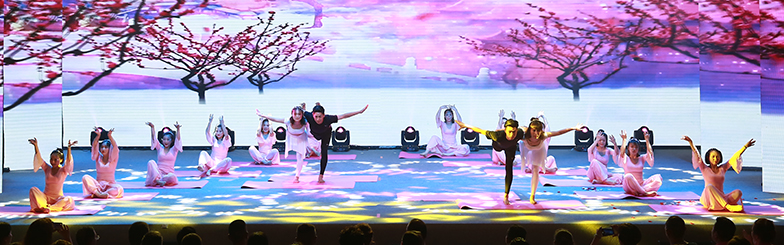 伴隨著滌蕩心靈的唯美音樂,“武水麗人”向現(xiàn)場(chǎng)觀眾展示著最美好的自己。一呼一吸,寧?kù)o優(yōu)雅,端莊細(xì)膩;舉手投足,行云流水,柔軟曼妙,將女性之美發(fā)揮到了極致。精彩的表演將現(xiàn)場(chǎng)觀眾帶入到一種妙不可言的秘境之中……不同風(fēng)格的瑜伽體式展示,與美輪美奐的舞臺(tái)背景完美融合,給現(xiàn)場(chǎng)的眾多瑜伽愛好者帶來(lái)了一種全新的感官體驗(yàn),共同經(jīng)歷了一場(chǎng)心靈的洗禮。