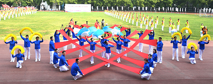上午8時許,在雄壯的《運動員進行曲》伴奏下,6名護旗手組成的國旗方隊和19支代表隊方隊先后接受大會檢閱,運動員們步伐整齊、精神抖擻、口號嘹亮、動作新穎,充分展現(xiàn)了城投職工良好的精神風貌,給大家留下了深刻印象……隨著公司董事長金國發(fā)宣布本次賽會開幕,600名職工帶來了新編創(chuàng)作《我和我的祖國》、《咱們工人有力量》大型團體操展示,伴隨著激昂的旋律,他們動作整齊劃一、協(xié)調舒展,充分展現(xiàn)了城投職工愛黨愛國愛企業(yè)、團結奮發(fā)的精神面貌。